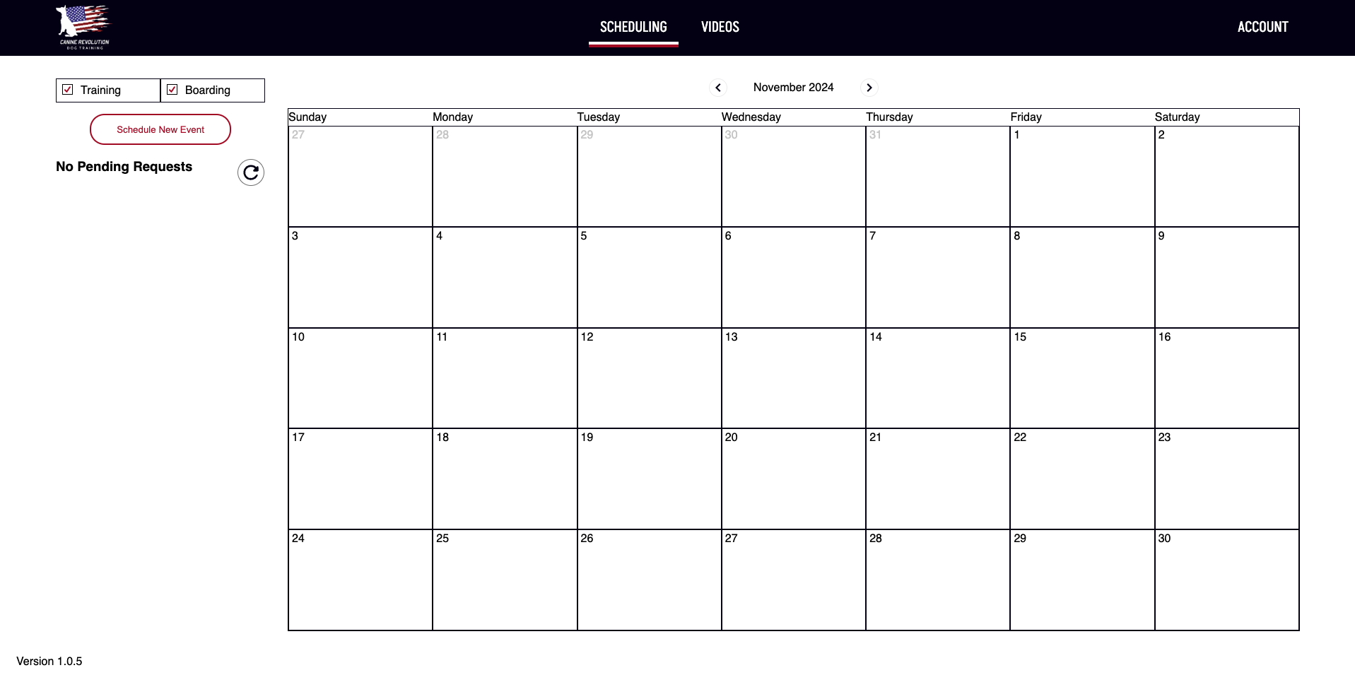 I was the lead developer and designer for this project while working at Busy Human LLC. The project lets users schedule dog trainings and boardings, pay using Stripe, and manage any of their upcoming events.